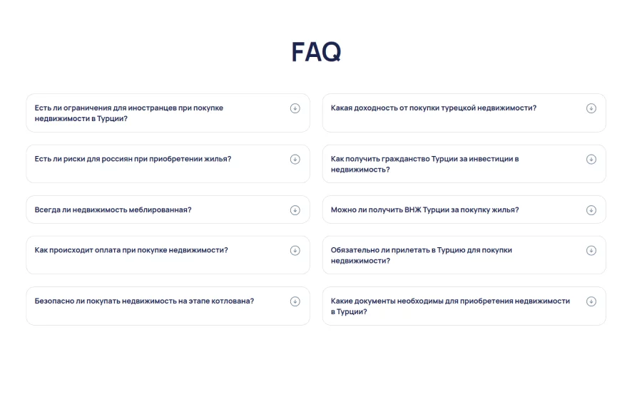 Был добавлен блок с вопросами и ответами, чтобы пользователи не уходили с сайта, а узнавали нужную информацию сразу на странице.