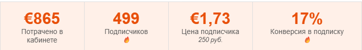 ▶ KPI от клиента: 800 подписчиков в месяц по цене не выше 1,2 евро в кабинете (≈ 200–250 рублей с учётом всех комиссий и НДС).