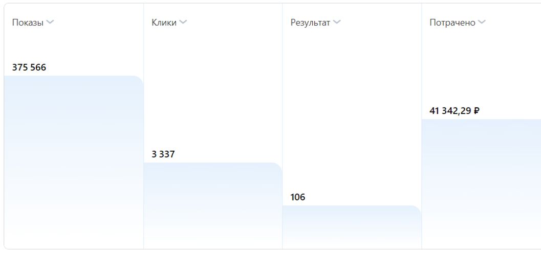 За два месяца кампании было получено 106 заявок при выделенном бюджете в 41 000 рублей. Средняя цена лида составила 400 рублей - очень хороший результат для ниши.