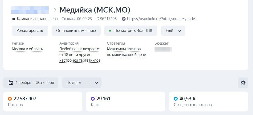 Всего за месяц реклама «Экспресс Успокоина» была показана 22-м миллионам пользователей. Охват кампании превысил 5 миллионов пользователей в месяц.