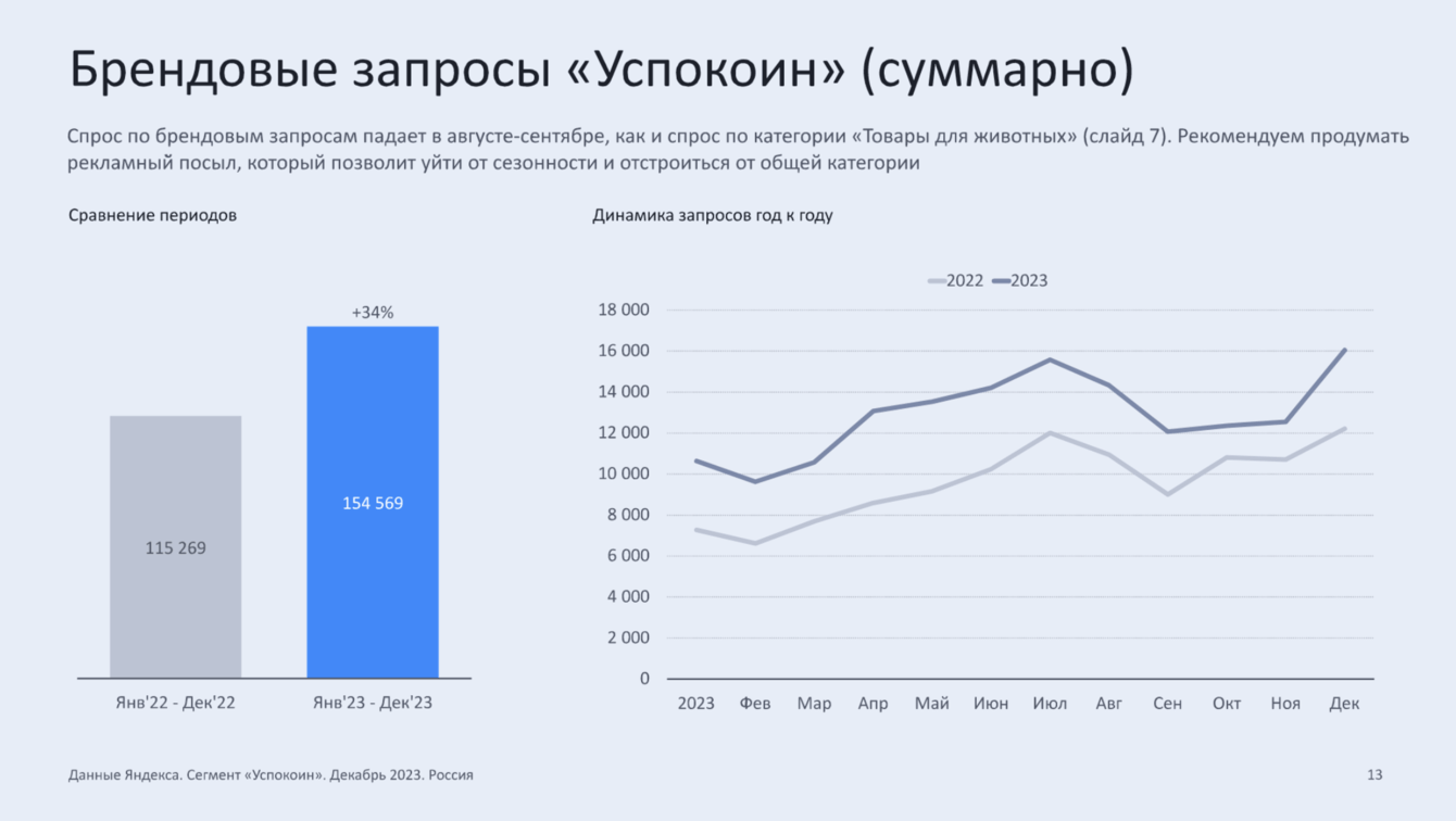 Практически с первого месяца работы популярность средства для животных начала расти, а количество брендовых запросов увеличилось почти в 2 раза по сравнению с предыдущим 2022-м годом.