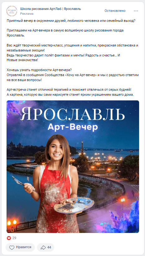 Было принято решение запустить рекламу в виде поста с фотографией процесса МК.