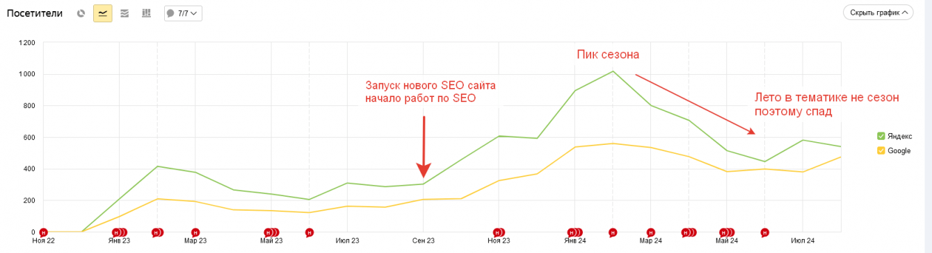 Сотрудничество с бильярдным клубом продолжаем, число звонков и заявок из месяца в месяц с канала SEO растёт, ну с поправкой на сезонность бизнеса конечно.
