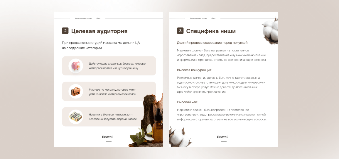 Для эффективной рекламы важно точно понимать, кто ваша целевая аудитория. Чтобы найти предпринимателей, заинтересованных в покупке франшизы массажной студии, мы используем следующую стратегию:
