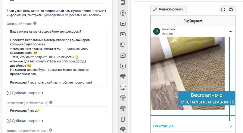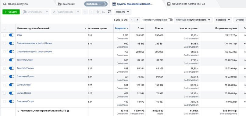 1. Сначала поддерживали за счет подключения look-a-like аудиторий (похожие аудитории из регистраций, ТОП посетителей сайта, вовлеченность в аккаунт инстаграм, из базы покупателей клиента)