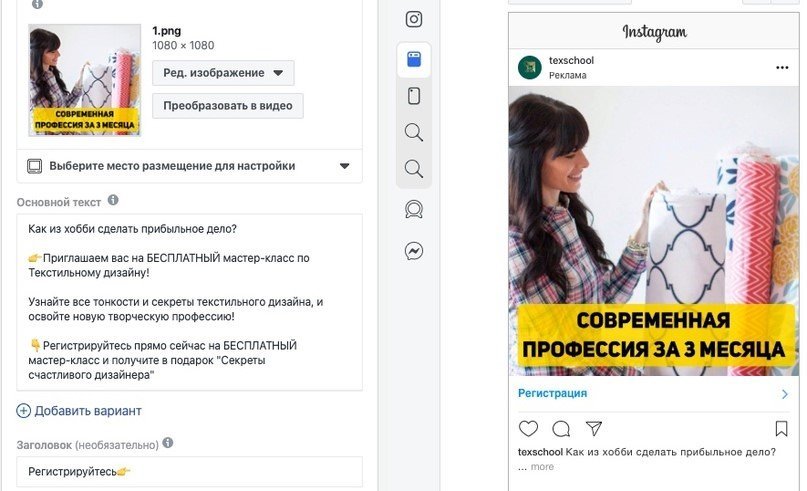Для креативов использовали разные форматы рекламы: для ленты, для сторис, видео. Из явных фаворитов выделил только 2 креатива, т.к. под разные аудитории все связки работали по-своему хорошо. Так же пробовали дизайнерские картинки, но они не сработали.