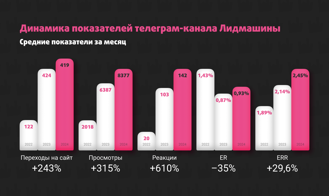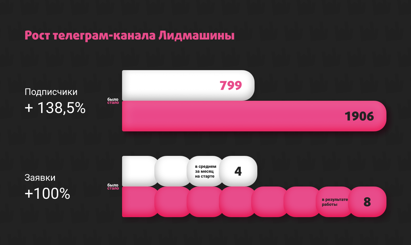 • узнаваемость бренда (медиа «Бизнес Секреты» предложило Лидмашине сотрудничать, а сам канал попал в топ активности диджитал-агентств в телеграм-каналах от Workspace);