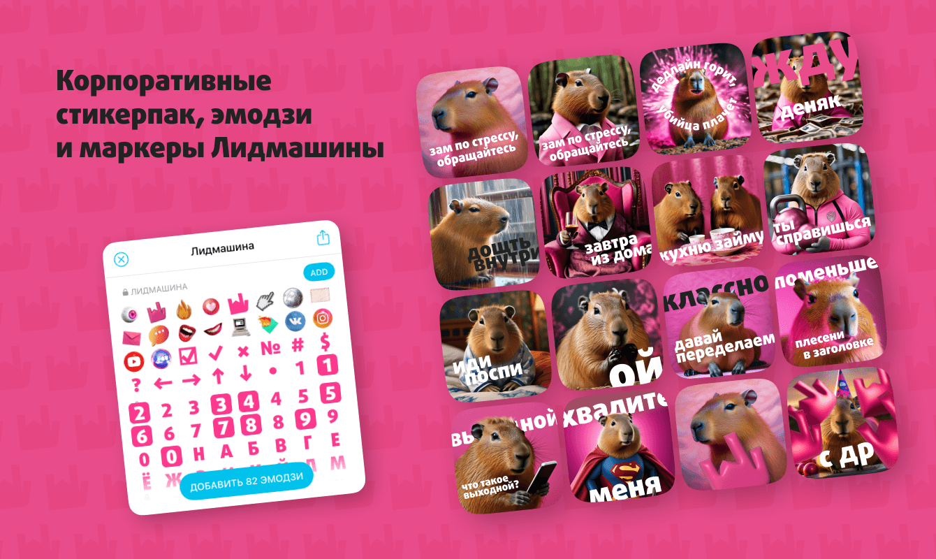 • создали собственный стикерпак с капибарой — маскотом агентства, а также корпоративные эмодзи и маркеры текста.