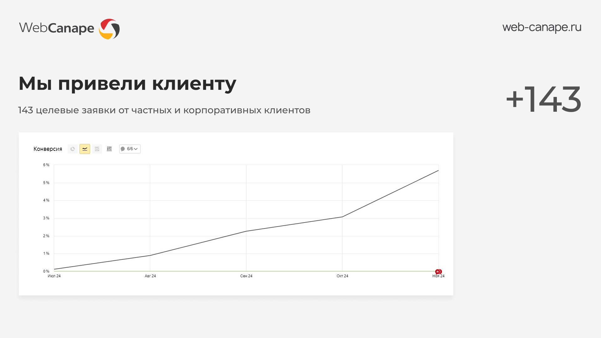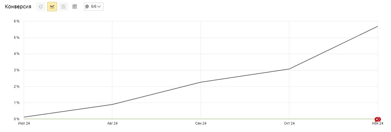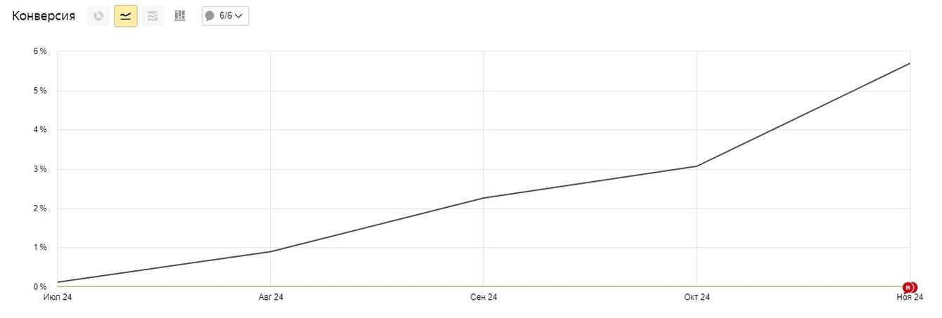 В результате конверсия показала уверенный рост и составила почти 6%.