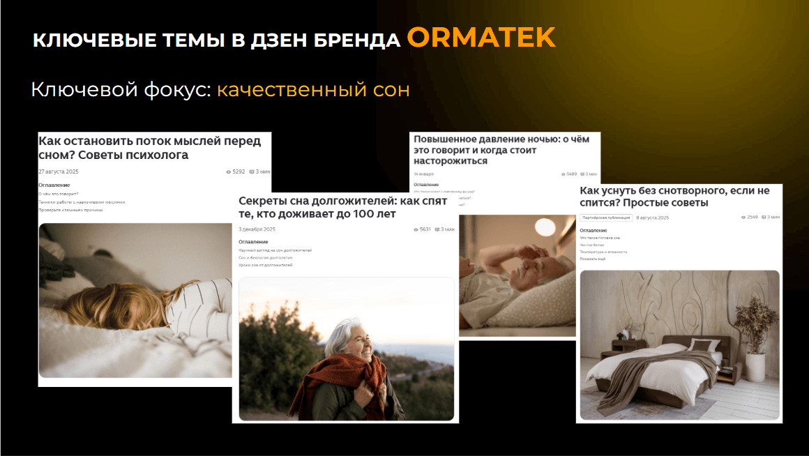 Главной стратегической победой стало успешное позиционирование бренда. Теперь ORMATEK — главный источник экспертизы в категории товаров для сна.