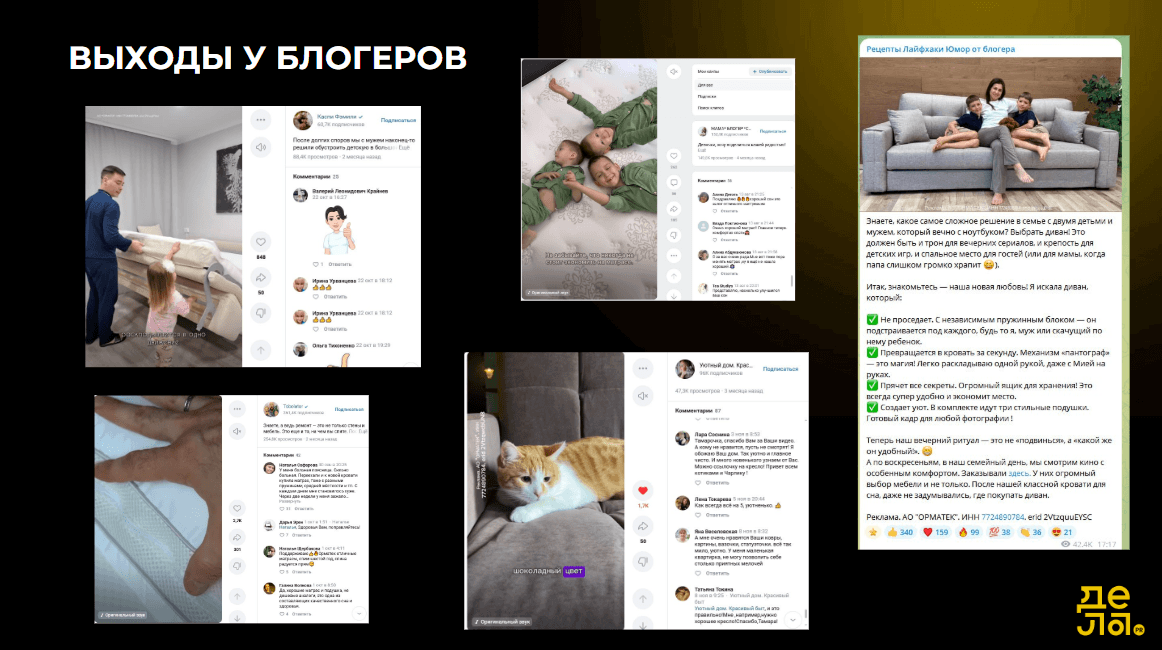 В рамках продвижения бренда у блогеров мы сделали акцент на качестве аудитории и нативности. Продвигали бренд в следующих нишах:: эстетика, дизайн, лайфстайл и материнство, так как они пересекаются с темой обустройства дома, создания уюта и заботы о здоровье. Например, дизайнеры интерьеров подчеркивали эстетическую ценность продукта, качество материалов и необходимость грамотного создания спальни, а в семейных и лайфстайл-аккаунтах демонстрировали пользу для жизни и здоровья. Контент соответствовал трендам 2025 года осознанного потребления, заботы о здоровье, отказа от гонки и переосмысления жизни на фоне нестабильной ситуации в мире.