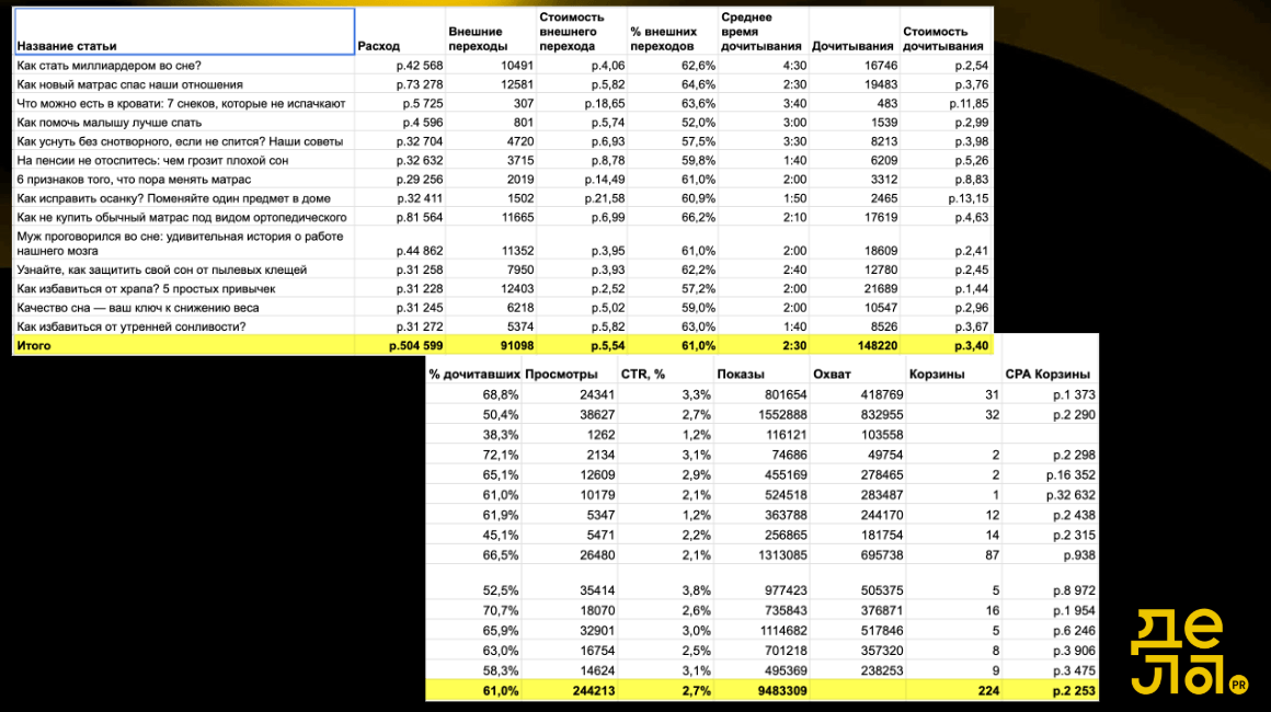 Обеспечили лидерство в экспертном контенте в категории товаров для сна.