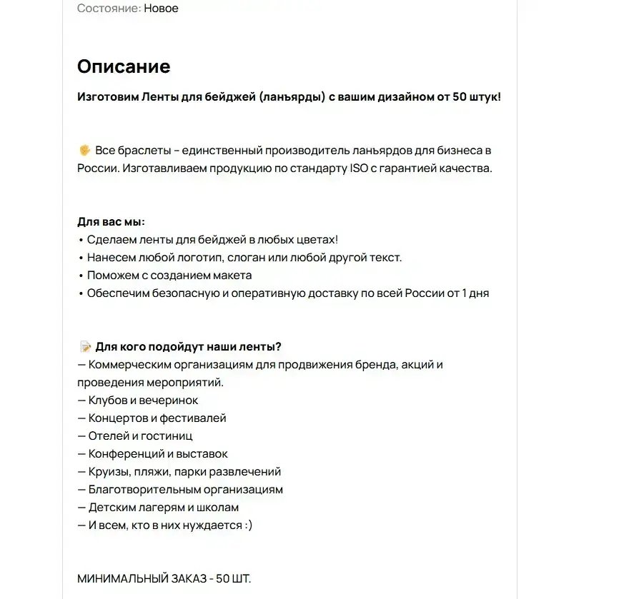 Добавили цепляющее описание: гарантии, дизайн бесплатно, срочная доставка