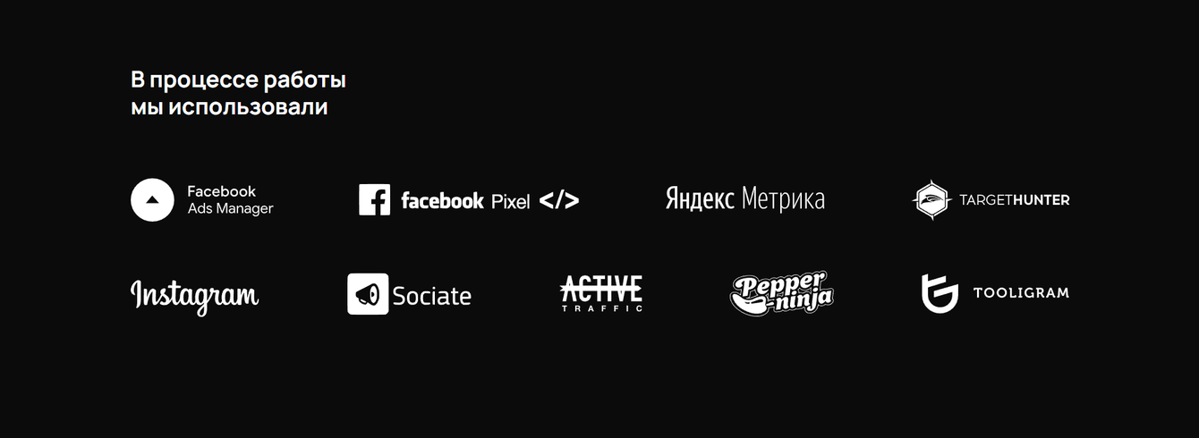 Компания только начала свою деятельность, поэтому нашей основной целью было привести клиентов и ознакомить целевую аудиторию с новым брендом.