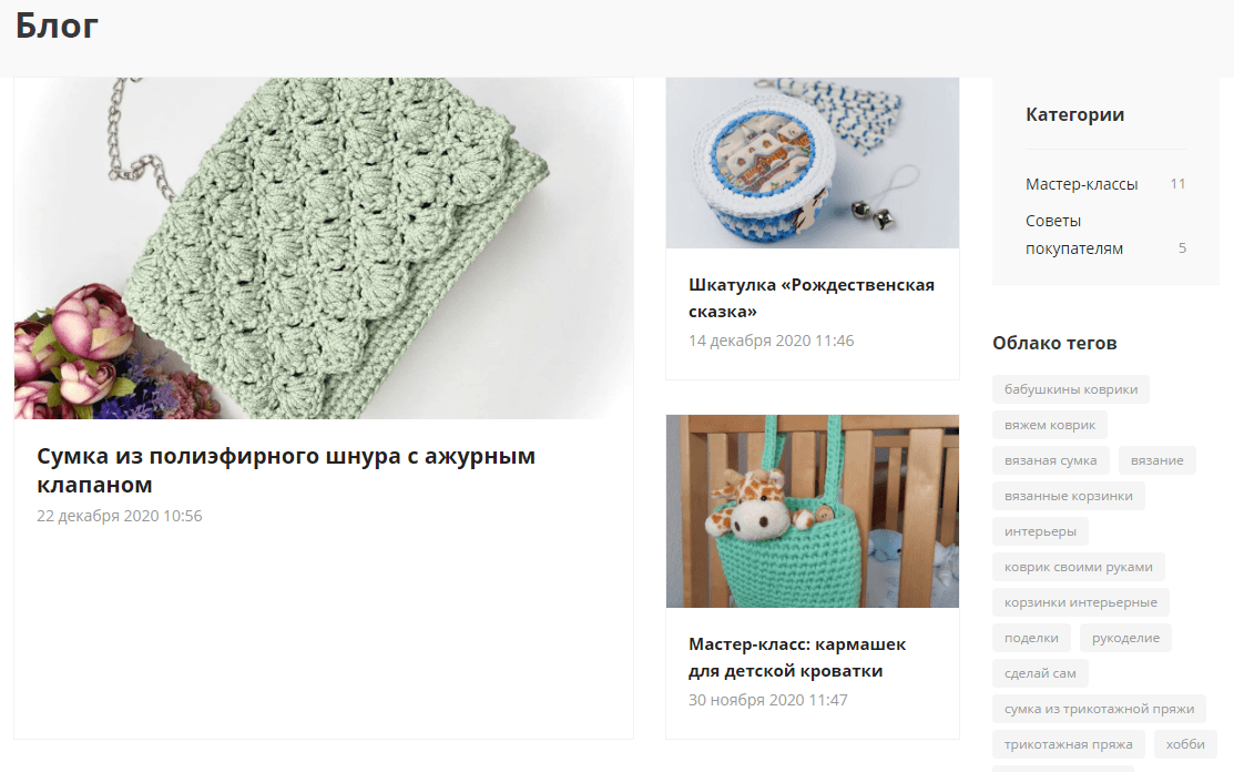 Также внизу добавлен блок с полезными статьями из блога (например, мастер-класс по вязанию из такой пряжи).