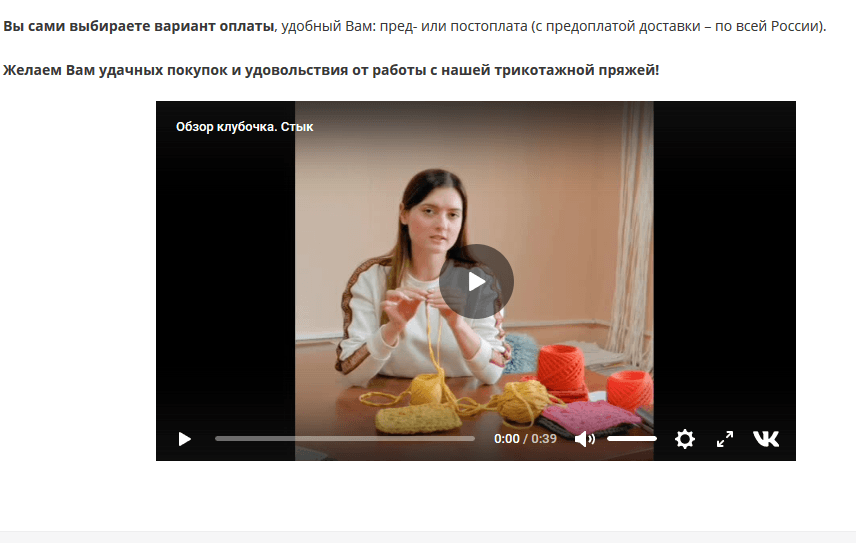 Также внизу добавлен блок с полезными статьями из блога (например, мастер-класс по вязанию из такой пряжи).