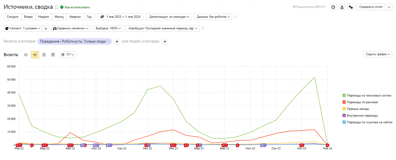Благодаря доверию клиента и следованию всем рекомендациям наших специалистов по SEO каждый год мы показываем стабильный рост. Именно поэтому поисковый трафик уже который год является для нашего клиента основным каналом продаж.