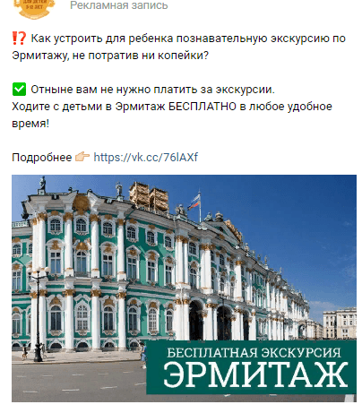 Часть пользователей, которые не любят переходить на лендинги, нажимают в рекламных объявлениях на ссылку в группу. Там их ожидает интересный контент.