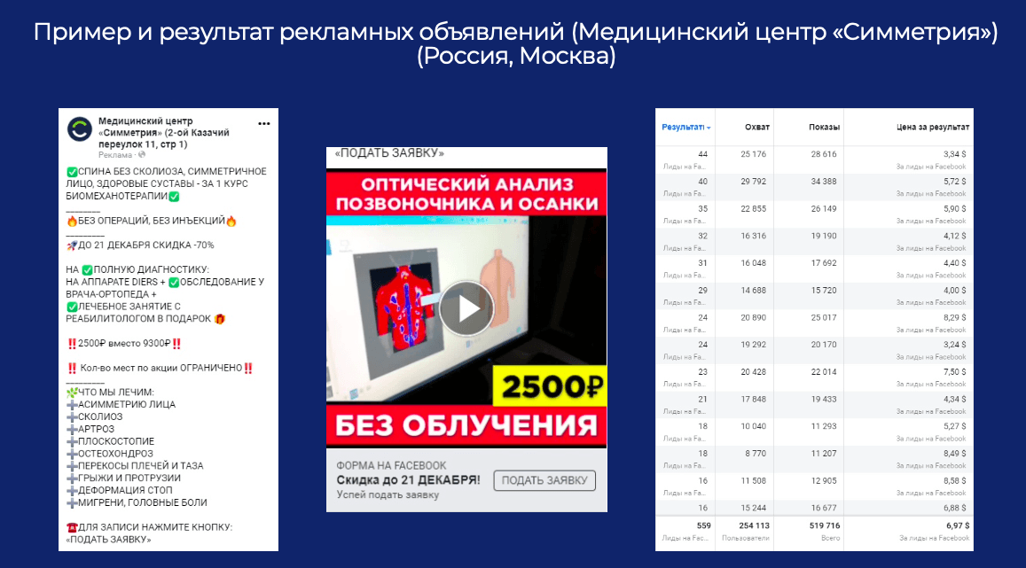 - увеличение клиентов в медицинских центрах (лечение боли в спине, суставах, устранение асимметрии лица и другие медицинские услуги)