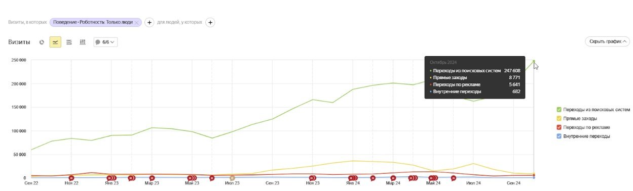 Переходы из поисковых систем являются главным источником трафика сайта: