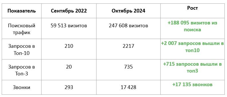Все проведенные работы оказали положительное влияние на ранжирование сайта в результатах поиска.