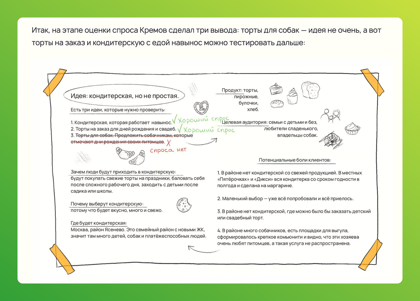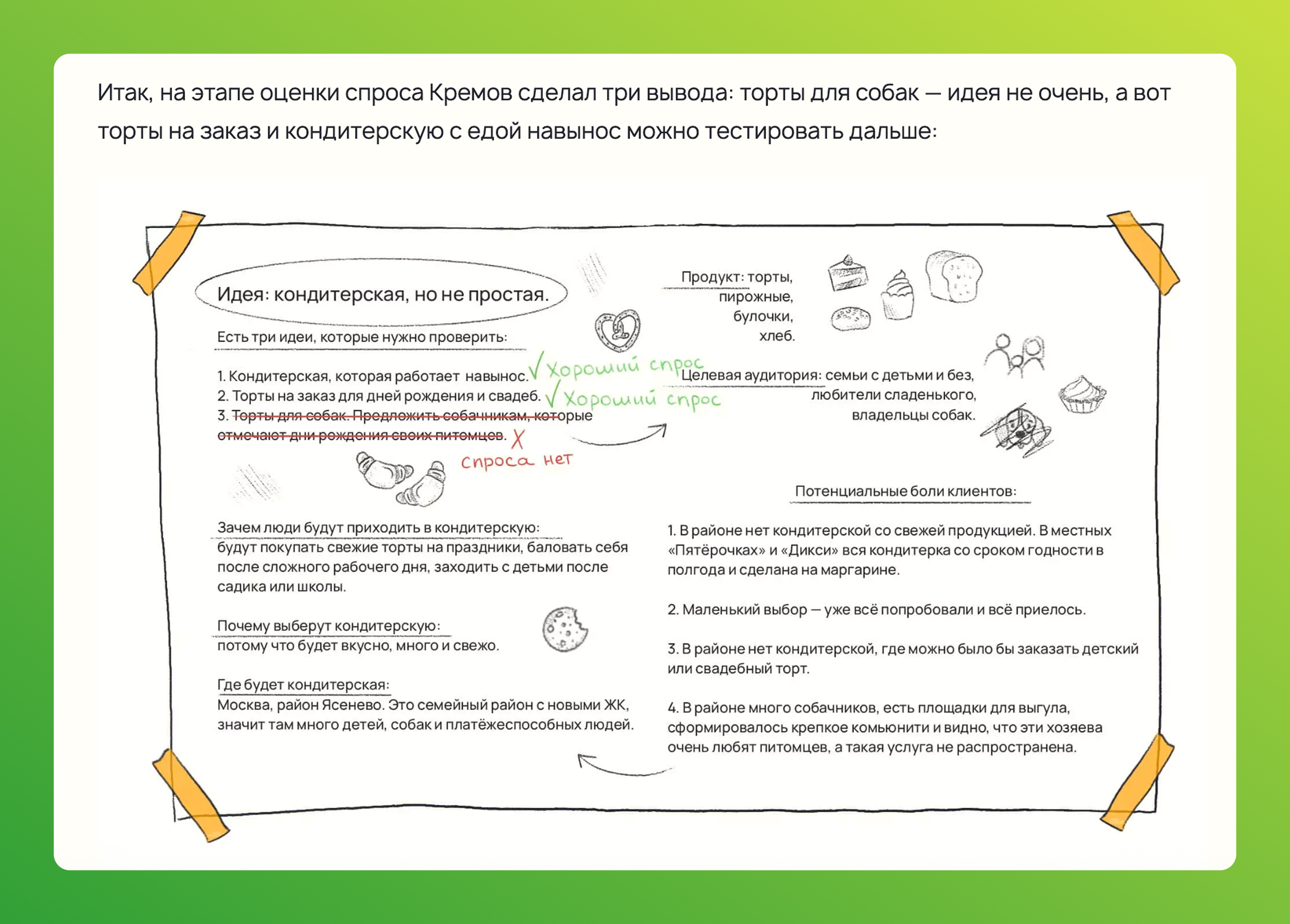 Кремов проходит через все этапы: анализирует рынок, ищет инвесторов, нанимает сотрудников, разбирается с налогами.