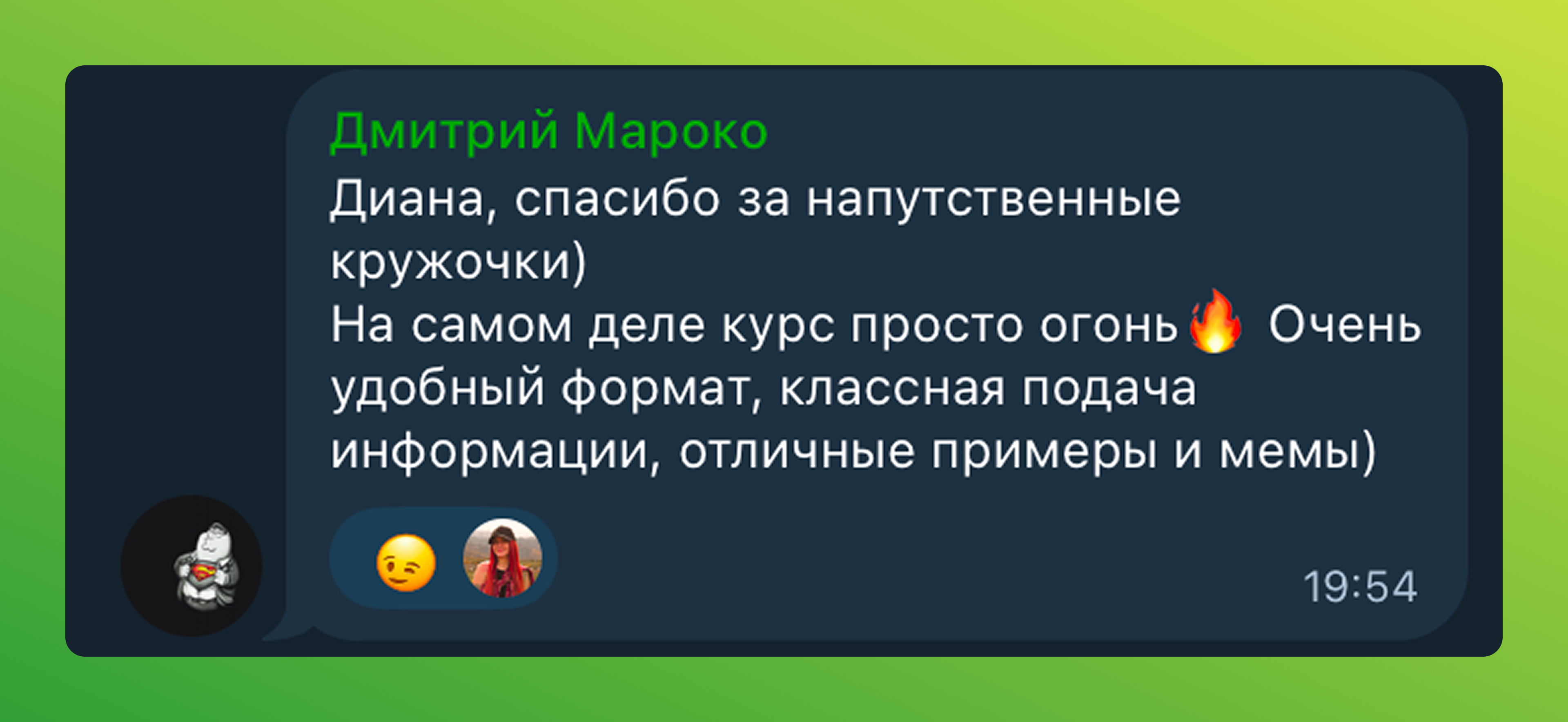 Иногда шутили немного пошло, но в итоге это было оправдано: читатели курса потом присылали этот скрин в чат с длинным АХАХ