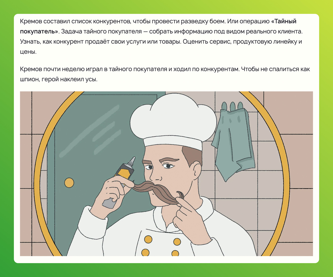 Кремов — не просто иллюстрация к теории. Он ошибается, сомневается, учится на своих косяках. Когда читатель видит, как Кремов чуть не открыл кондитерскую в бизнес-центре, где люди хотят борщ, а не эклеры — это запоминается лучше любого списка «10 ошибок начинающего предпринимателя».