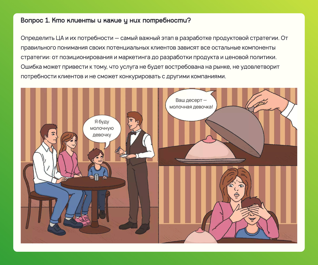 Иллюстрация — мощная штука. Самое любимое, когда иллюстрация не только повышает понимаемость текста, но и развлекает читателя одновременно. Такое всегда врезается в память и лучше запоминается.