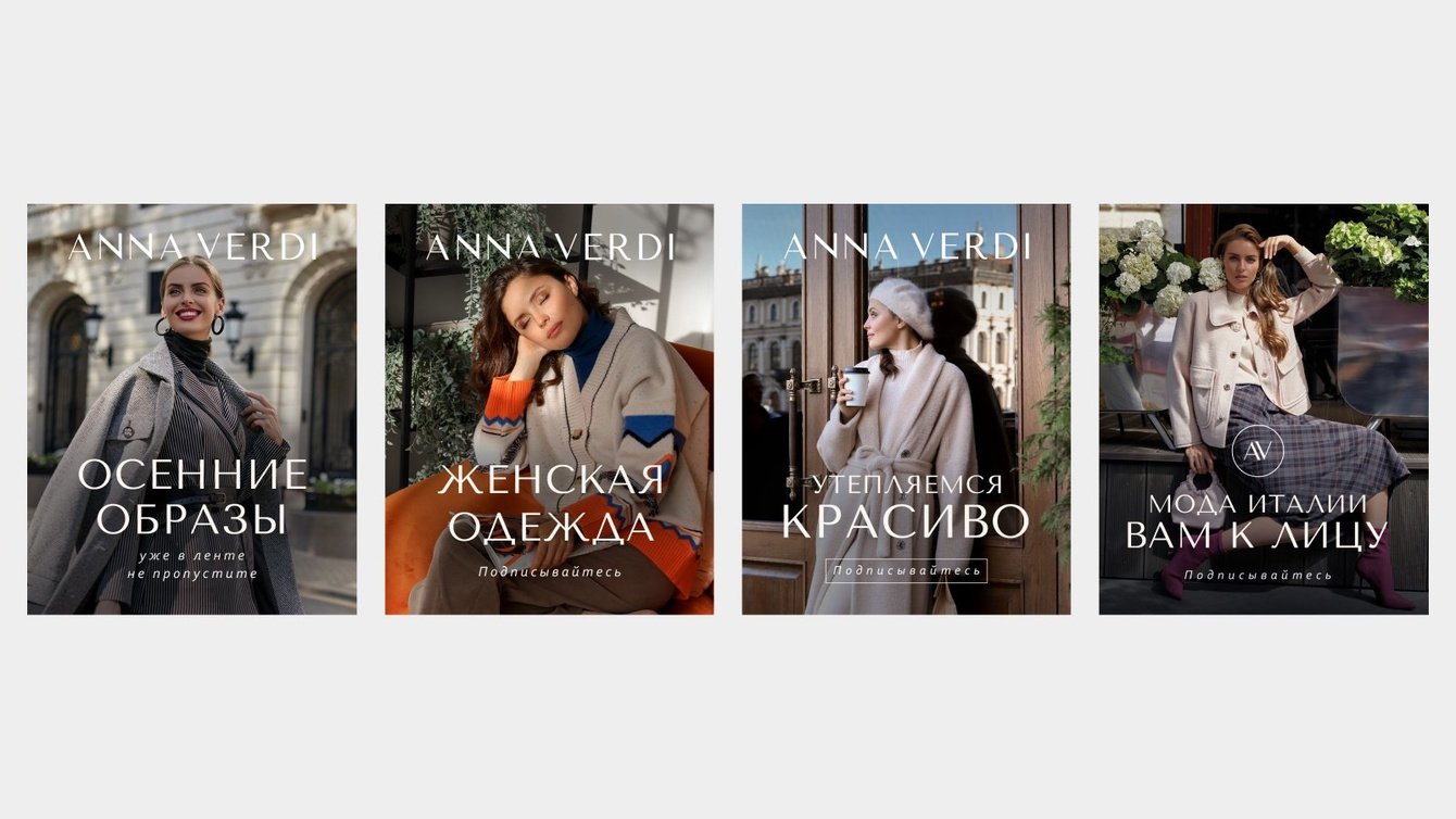 Перед запуском рекламной кампании мы сделали рекламные макеты, в соответствии с новым брендбуком Anna Verdi, который тоже разработало наше агентство. Подробнее о том, как мы создавали логотип и брендбук для Anna Verdi — читайте в других наших кейсах.