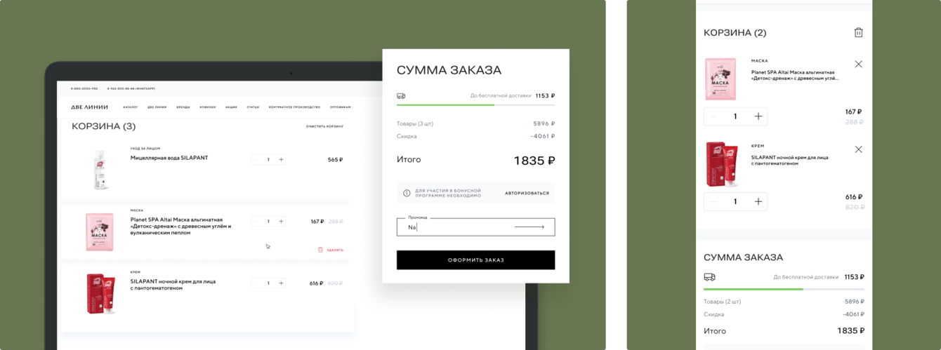 Создание корпоративного сайта с функционалом интернет-магазина для бренда «Две Линии» стало успешным решением, сочетающим в себе эстетичность, удобство и функциональность. Новый сайт эффективно представляет компанию на рынке, отражая её философию и премиальный характер продукции.