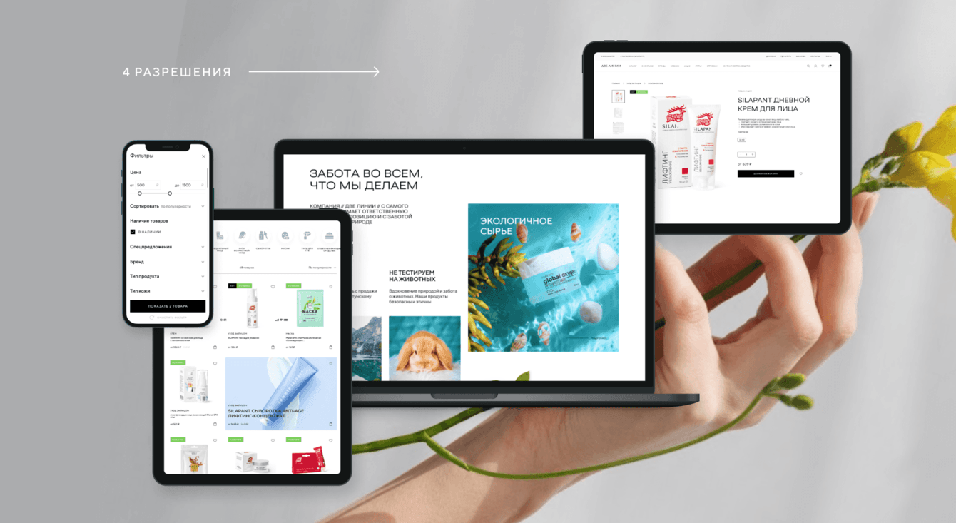 Создание корпоративного сайта с функционалом интернет-магазина для бренда «Две Линии» стало успешным решением, сочетающим в себе эстетичность, удобство и функциональность. Новый сайт эффективно представляет компанию на рынке, отражая её философию и премиальный характер продукции.