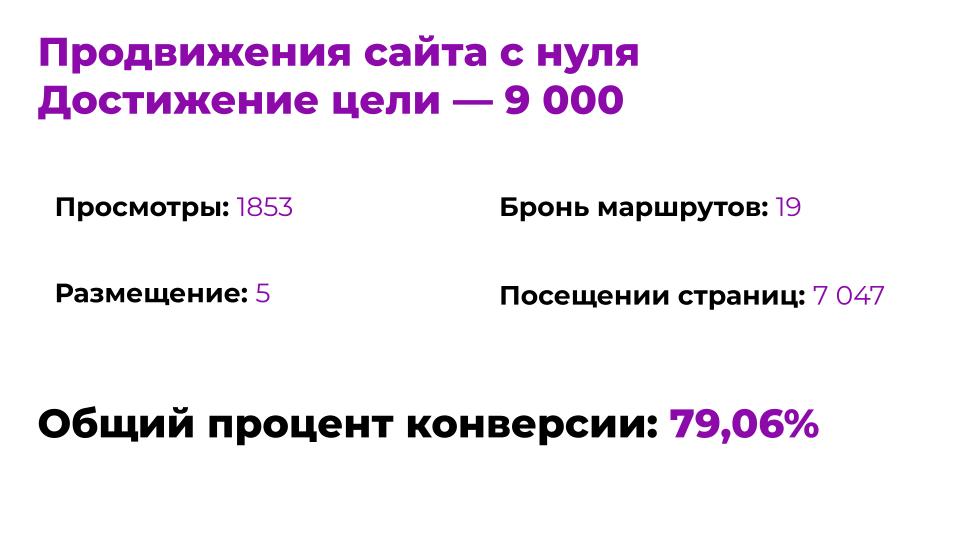 За 6 месяцев продвижения продвижения сайта с нуля (при работе контекстной рекламы в течение 4 месяцев) общая цифра по достижению цели достигла 9 000.