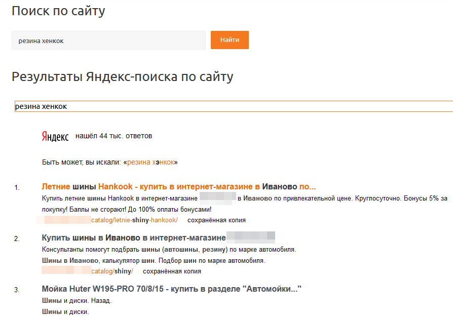 По результатам статистики оказалось, что около 25% людей, пользующихся поиском по сайту, не получают результатов в ответ на свой запрос (кстати, в Битриксе это можно легко определить). Хотя такие товары есть. Поэтому мы внедрили дополнительный поиск от Яндекса, который отображается, если основной поиск не дал результатов.