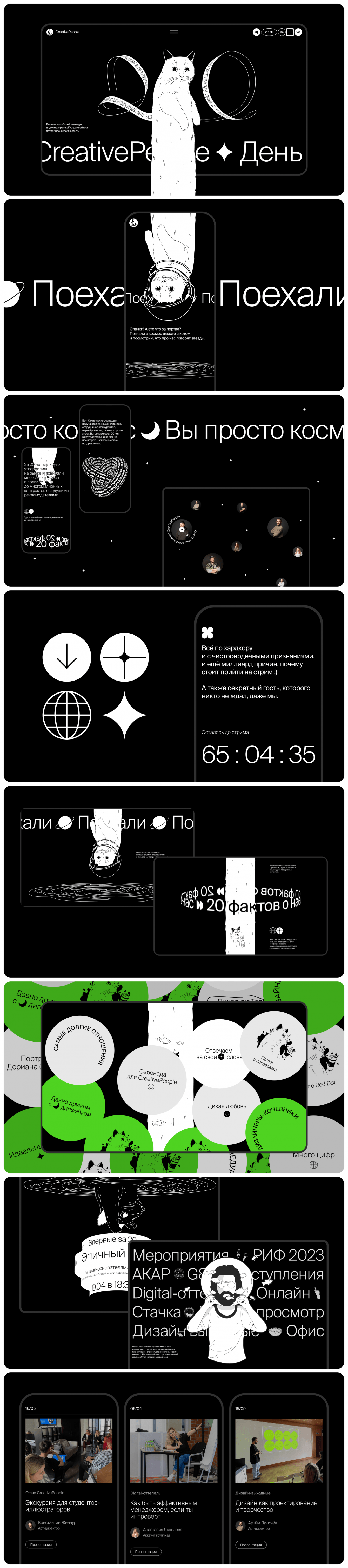 Для этого был создан праздничный лендинг, который весь год постепенно дополняется праздничным контентом — вашему вниманию малоизвестные факты про CreativePeople, юбилейный стрим, поздравления от звезд и хит-парад наших выступлений в 2023.