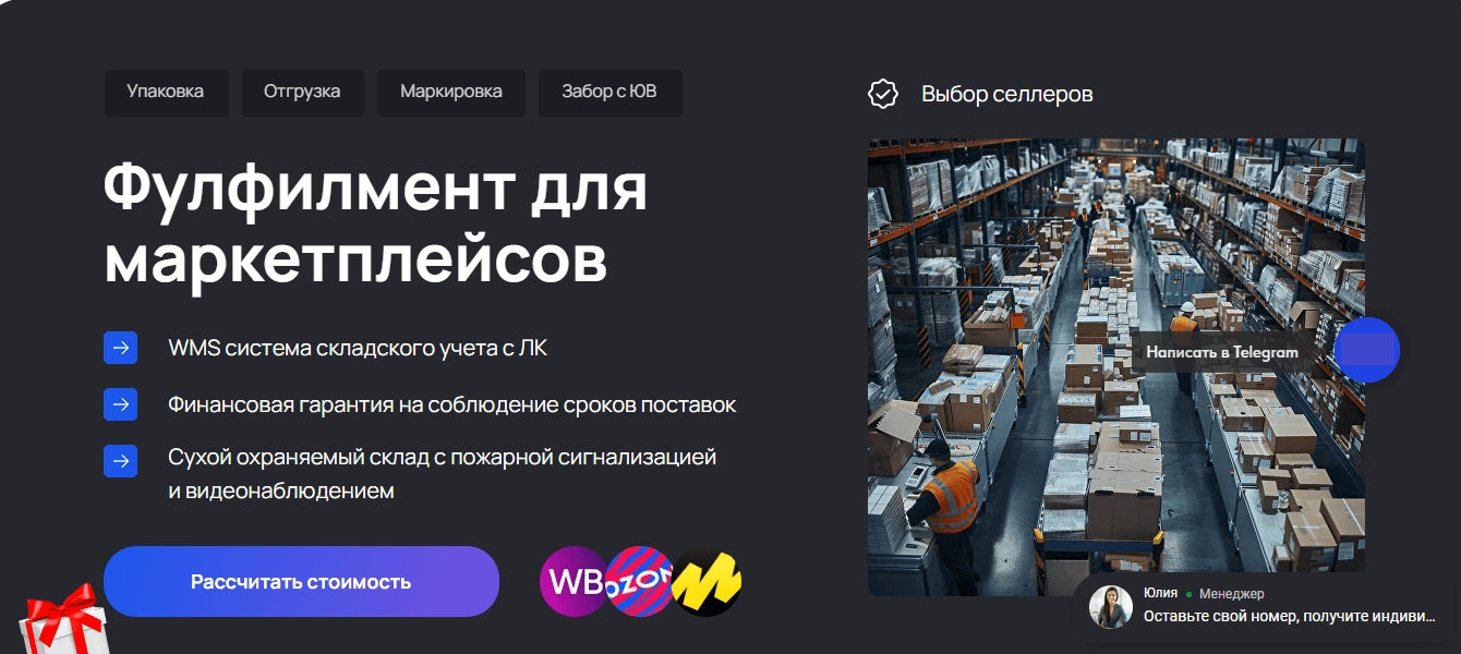 В августе 2024 года в наше агентство обратилась Анастасия - основательница фулфилмент-центра. Компания поддерживает селлеров на маркетплейсах на каждом этапе продаж: