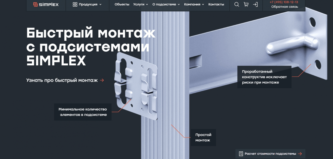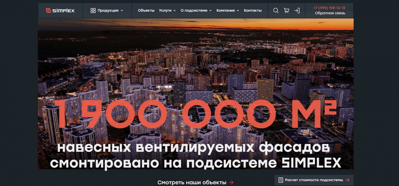 На конец 2019 года компания Симплекс-Фасад очень сильно выросла по продажам и уровню клиентов (крупные строительные девелоперы, заказчики, ген. подрядчики) и заняла одно из лидирующих мест на рынке производства систем навесных вентилируемых фасадов, а вот сайт устарел и хотя и обеспечивал хороший поток лидов, но с точки зрения имиджа очень сильно проигрывал конкурентам. Нужен был совершенно иной уровень дизайна, информационной насыщенности и функционала сайта.