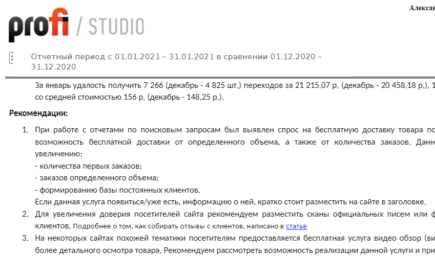 Анализировали конкурентов и предлагали решения для повышения эффективности рекламы, сайта и расширения продаж.