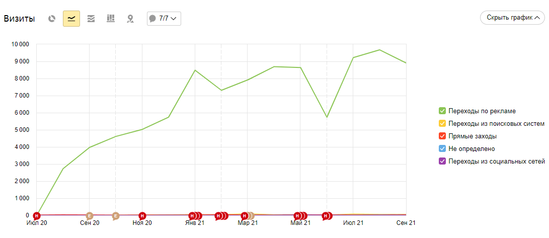 Зарегистрировали и установили на сайт счетчики Яндекс Метрики и Google Analytics. Настроили цели в Яндекс Метрики и Google Analytics для фиксирования конверсий на сайте и настройки рекламы на тех пользователей, которые с большей вероятностью отправят заявку.