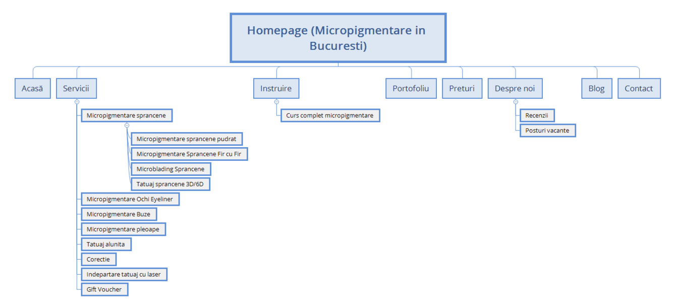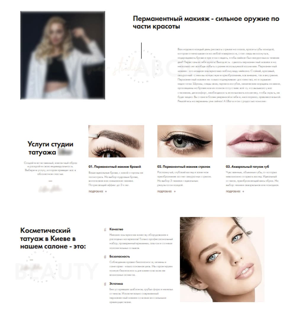 Была разработана структура сайта, которая охватывала все направления перманентного макияжа: брови, губы, глаза. Для каждой услуги были созданы отдельные страницы с контентом, ориентированным на румынскую аудиторию.