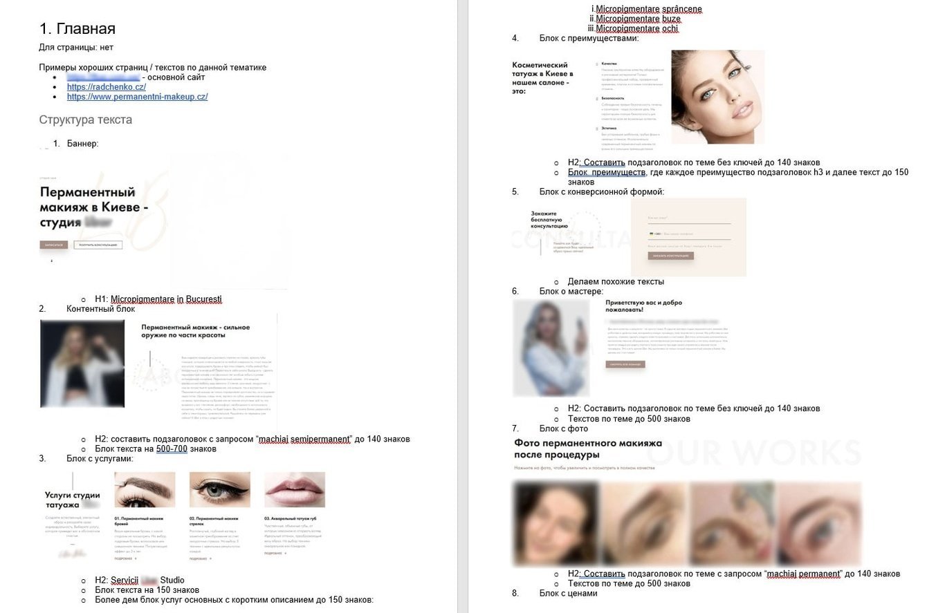 Основная задача заключалась в адаптации и продвижении сайта студии перманентного макияжа для нового рынка в Бухаресте. Клиент уже работал с агентством для киевской студии, поэтому было важно учесть различия в конкурентной среде и запросах в Румынии. Необходимо было создать SEO-оптимизированный сайт с грамотной структурой, который мог бы конкурировать с местными лидерами в сфере перманентного макияжа. Основные цели: