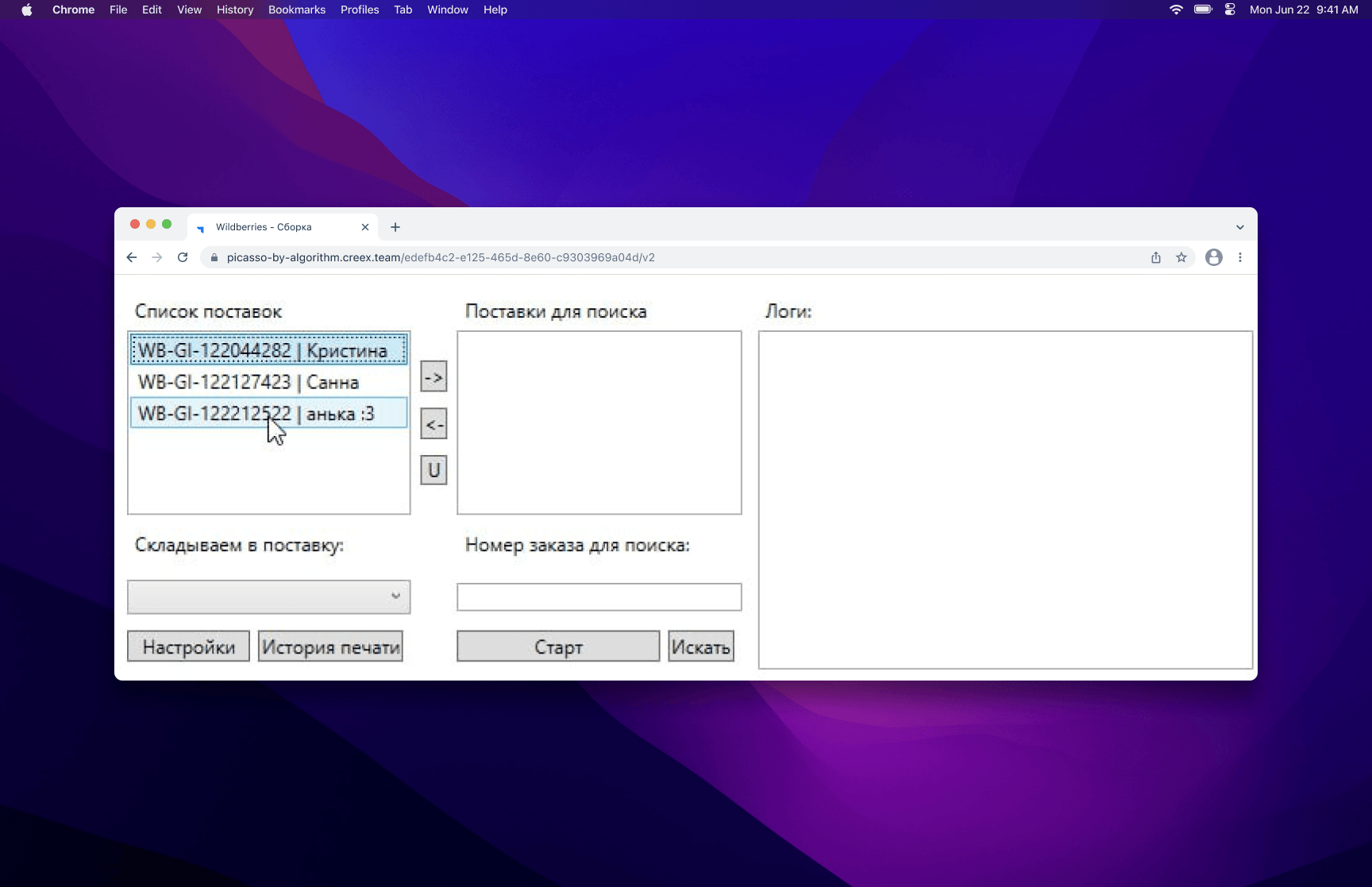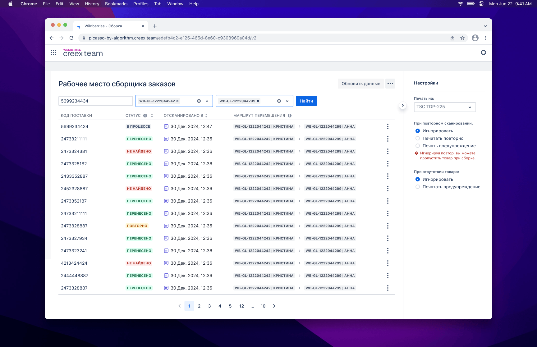 Совместно с клиентом проанализировали, как работают задания Wildberries, какие данные нужны для печати и каким образом проходит весь процесс на складе. Вместе сформировали понятное техническое задание.