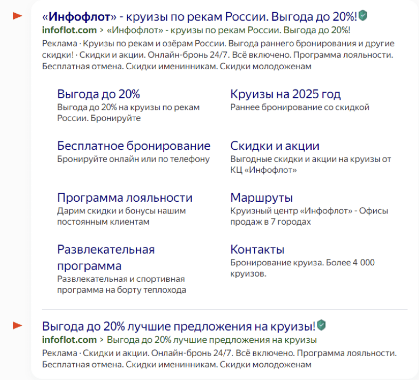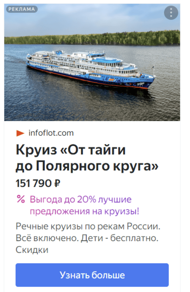Преобладающую часть бюджета направили на поисковые кампании для работы с наиболее горячим спросом. А распределение бюджета по запросам с брендом, теплоходами и направлениями позволяет максимально комплексно охватывать интерес на поиске.