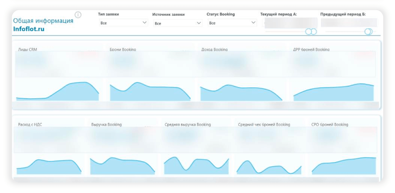 Специфика продукта обуславливает отложенный спрос (30-40% конверсий совершаются в течении 20 дней с момента контакта с рекламой). Поэтому оценка эффективности рекламного размещения проводится только спустя 2-3 недели с момента окончания периода. Для оценки результатов в разрезе покупок конкретных туров мы используем Яндекс Метрику и Power BI.