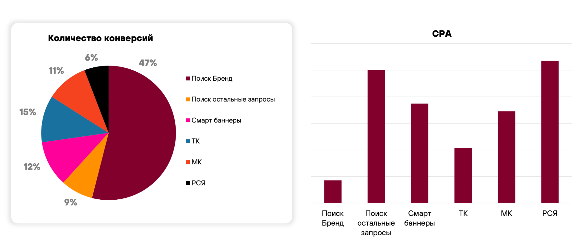 – 70% бюджета уходило на кампании, либо которые либо не генерировали заявки, либо же приносили конверсии дороже средней цены e-commerce-покупки в рамках данного проекта.