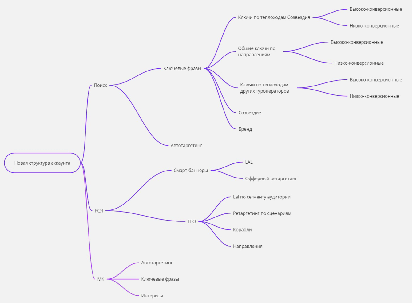 При разработке стратегии был сделан упор на упрощение структуры аккаунтов, повышение управляемости и укрупнение рекламных кампаний для обучения алгоритмов.