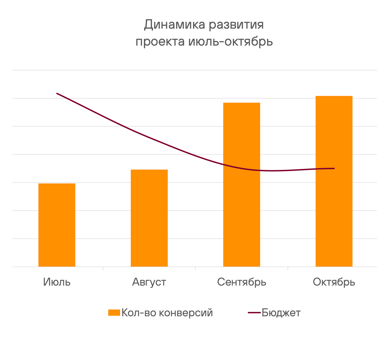Предыдущий подрядчик проявлял мало инициативы в вопросах развития проекта, а стоимость привлечения покупателя была выше целевой для бизнеса, в результате чего проект перешел в стадию стагнации, и заказчик принял решение сменить исполнителей, доверив маркетинговые задачи специалистам VBI.