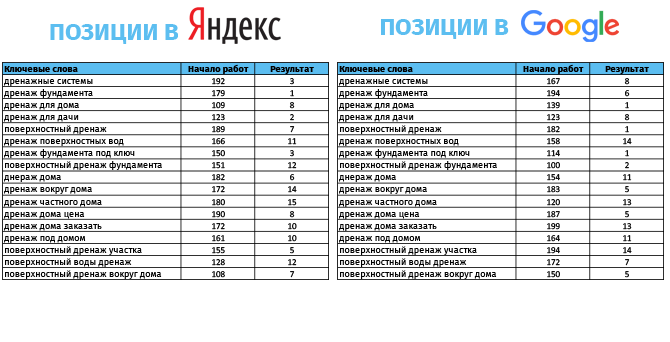 - Продвижение ключевых слов по позициям в Yandex и Google