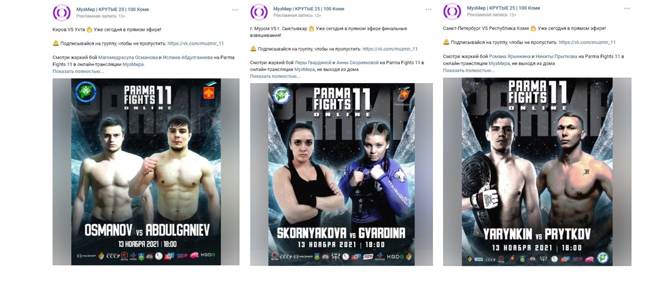 Трансляция турнира Parma Fights 11 попала в топ по просмотрам VK и обошла ежегодный хоккейный турнир Кубок Германии (Россия — Словакия).
