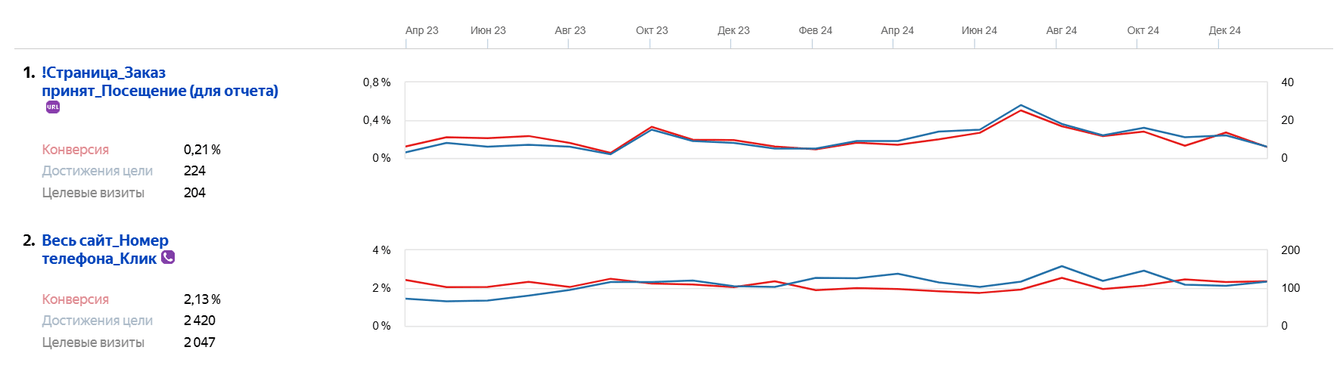 2. Улучшение поведенческих факторов. После оптимизации карточек товаров, форм заявок и коммерческих факторов пользователи стали дольше оставаться на сайте и чаще взаимодействовать с контентом.